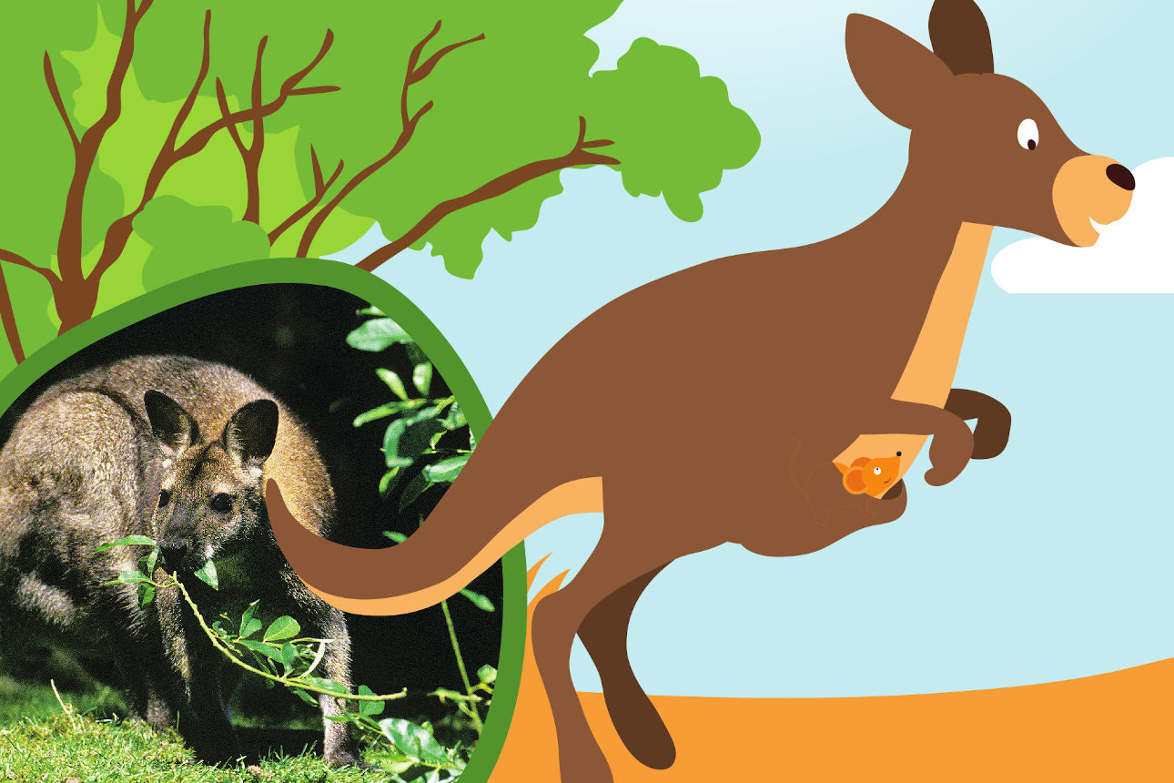 Les kangourous vivent en Australie. Avec leurs longues pattes arrières, ils traversent les déserts, les marécages et les montagnes en sautant. Il existe de petits et de grands kangourous, ils sont bruns ou gris, certains d’entre eux vivent même sur des arbres. Tous les kangourous ont une très longue queue qu’ils utilisent comme une troisième patte et qui les aide à garder l’équilibre.
