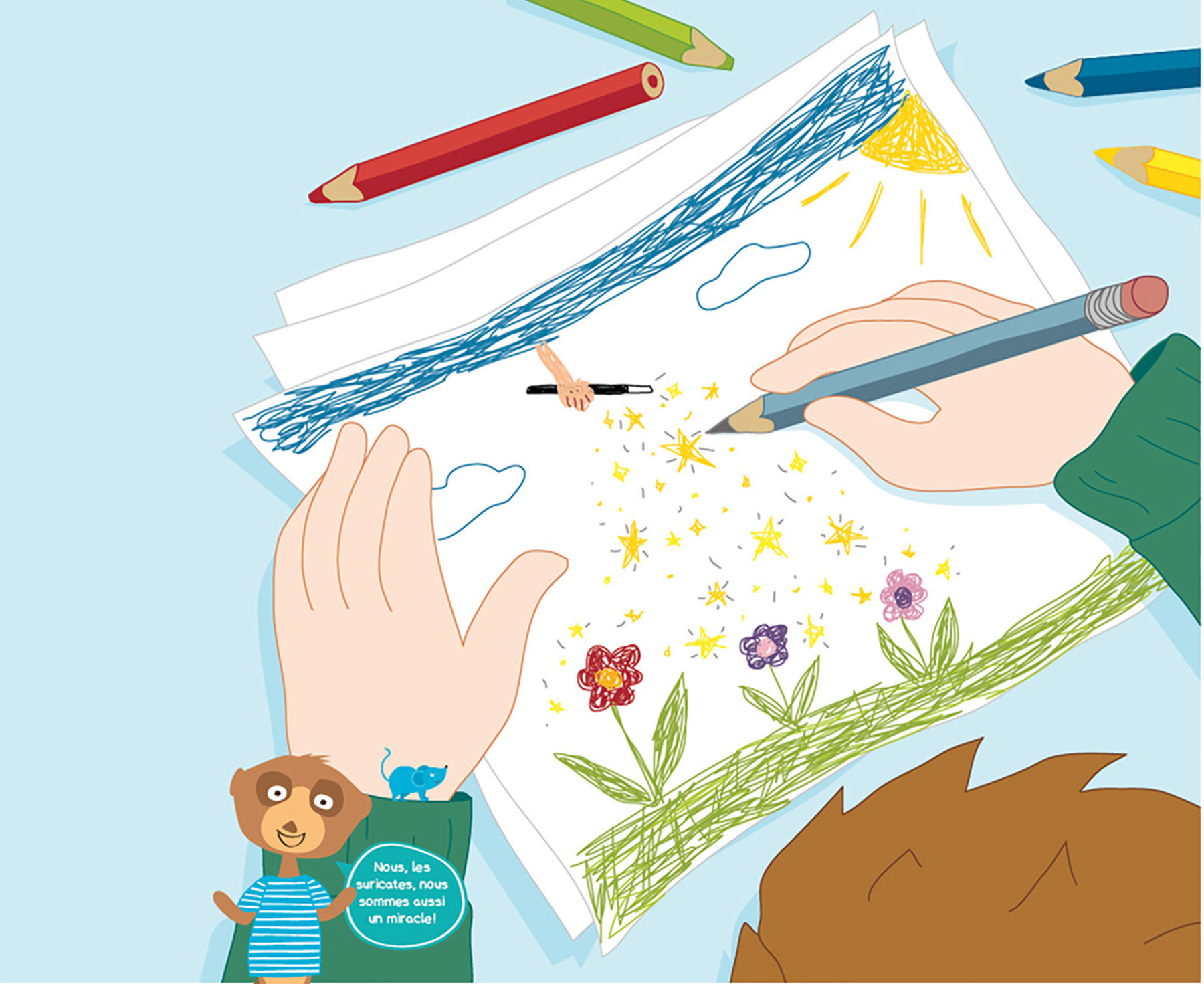 Dieu peut-il aussi faire de la magie? Quand Dieu a laissé pousser les premières fleurs, a-t-il dit «abracadabra» et agité un bâton étincelant? Cela semble amusant, n’est-ce pas? Mais c’était certainement différent. Dieu n’a pas besoin de tours, de paillettes ou de sorts. Parce qu’il peut tout faire. Je pense qu’il le peut simplement parce qu’il est Dieu. Quand Dieu dit que tout doit devenir vert et que les fleurs doivent pousser, alors cela se produit. Quand Dieu dit que le soleil doit briller le jour et la lune la nuit, alors cela arrive, Dieu est si grand et si puissant. Il fait des choses incroyables. La plus belle idée de Dieu était de nous créer. Observe comment ton corps bouge, ce qui se passe quand tu rigoles par exemple. Ou comment tes cheveux poussent. Il y a mille choses à admirer chez toi.