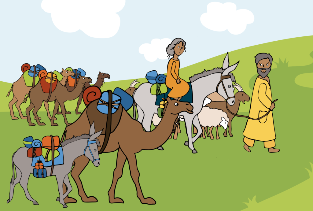 Tu trouves cette histoire dans la Bible, racontée d’après Genèse 18, 1-15 et 21, 1-7.